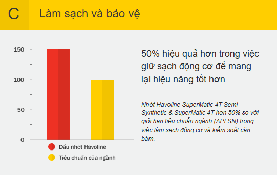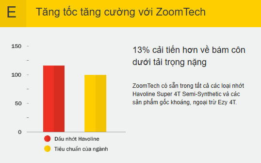 Có sẵn trong tất cả các sản phẩm trừ nhớt Havoline Ezy 4T